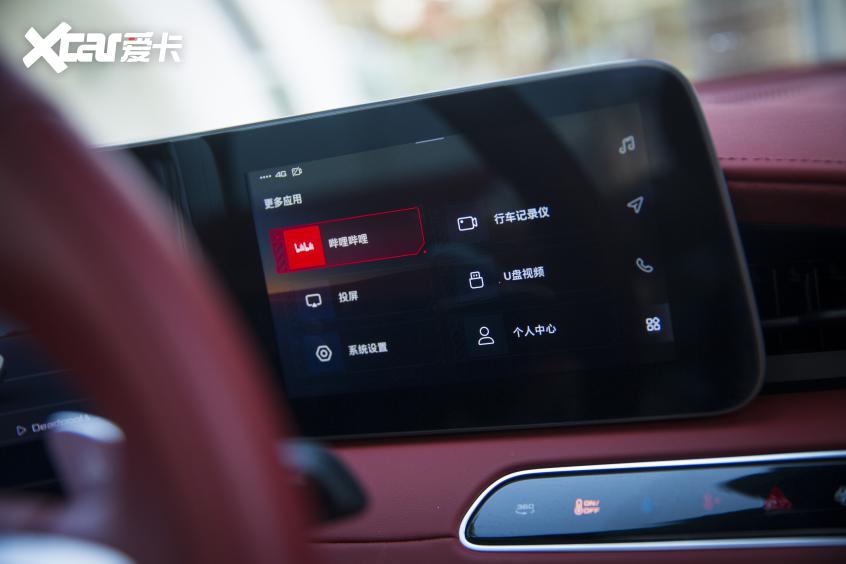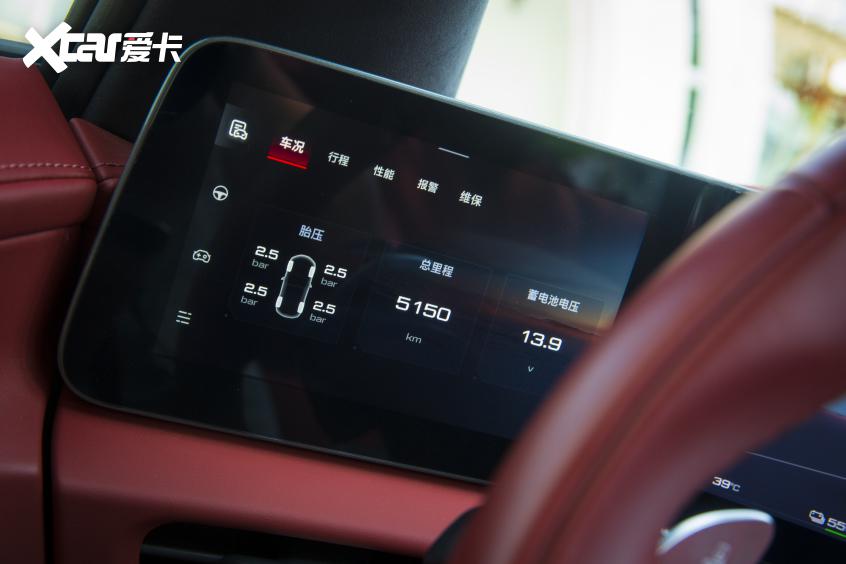 三块屏幕各司其职,中间的主屏幕显示行驶相关信息,而且左边的屏幕则是驾驶相关的内容,比如可以显示车辆里程、性能参数等内容,当启动超跑模式后,中间的屏幕显示信息也随之变化,将以功率和时速为主,而左边的屏幕则可以用来记录 0-60km/h、0-100km/h 以及 0-400m 的加速成绩,而且还有上海天马、北京锐思等多条赛道的相关信息。而右侧的屏幕则是用来显示一些娱乐、导航等与驾驶关系不大的内容。