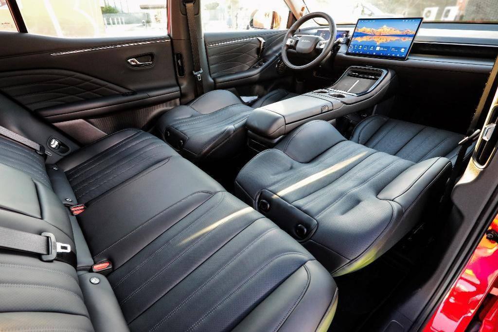 埃安霸王龙轴距为 2.775 米,但得益于 AEP3.0 平台,空间却比 3 米轴距的豪华 SUV 还要大。有效面积达到 4.42 平米,得房率高达 66%,还拥有 1.3 米的纵向高度,稳居同级前列。小朋友可以在车内站立玩耍,大型宠物也能在肆意活动。