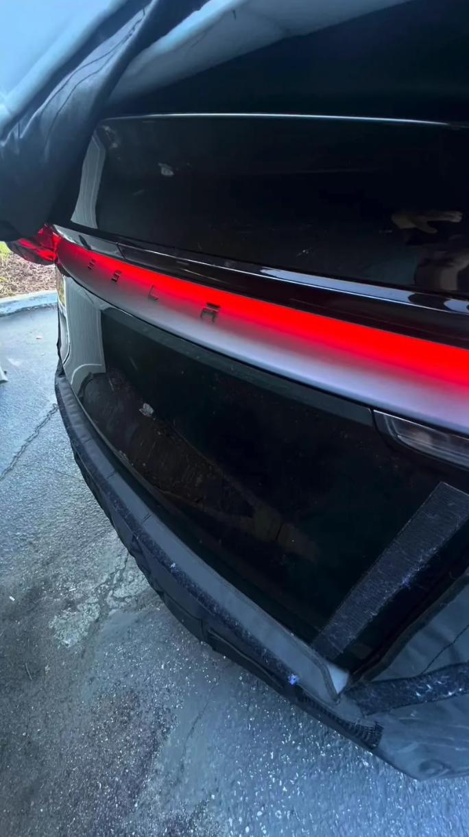 该车最引人注目的是全新的尾灯设计,取代了现款车型左右分体式尾灯和中间的 "T" 标识,新车似乎采用了隐藏式贯穿灯带,中间嵌入 "Tesla" 字样,极具辨识度。