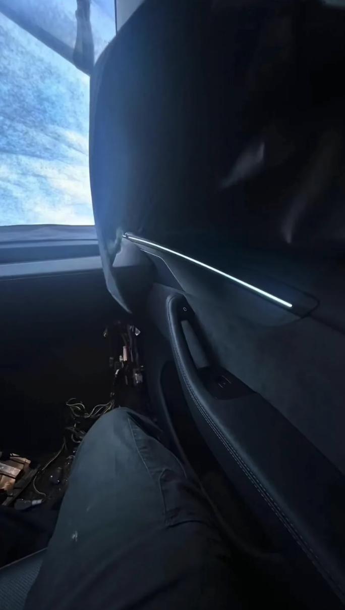 此外,内饰也进行了升级,配备了类似于新款 Model 3 的打孔通风座椅,同时仪表板和车门上还加入了一条氛围灯,提升了车内的豪华感。