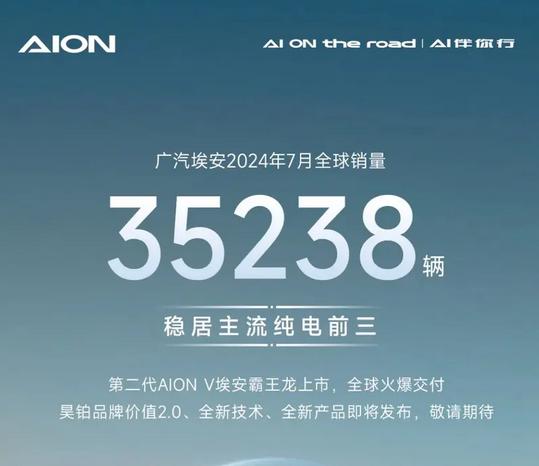 稳居主流纯电前三!广汽埃安7月全球销量35238台