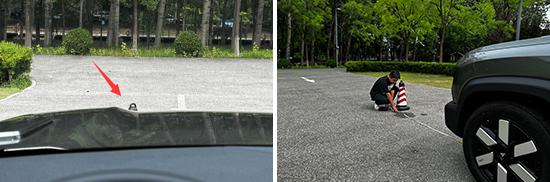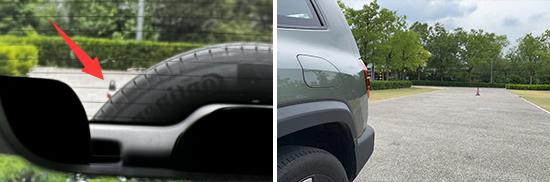 后方视野测试中,依旧将桩桶固定摆放,随后移动车辆直至可以观察到桩桶上沿为止,后方视野所测得的距离为 15.5m,处于同级别中上游水平。