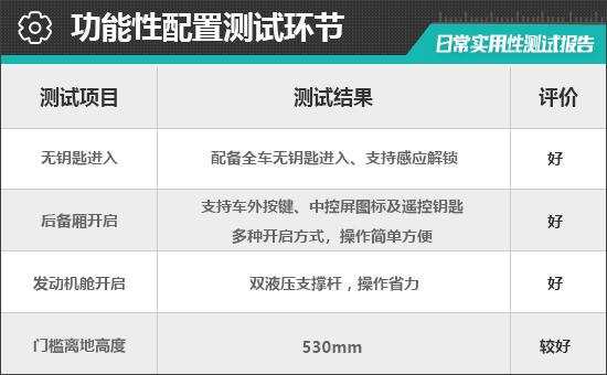对于消费者来说,门槛离地高度一定程度上决定了上下车便利性。根据实测结果来看,评测车门槛离地高度为 530mm,低于同级别车型平均水平。不过其所配备的固定脚踏板离地高度仅为 330mm,可使驾乘人员日常上下车便捷一些。