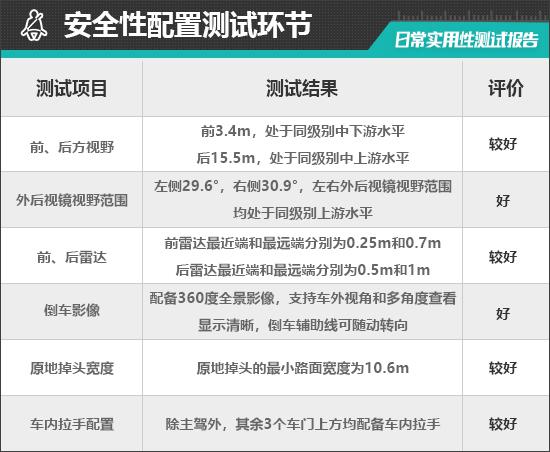 在车辆前、后方视野测试中,车内所有座椅均已调整至最低状态,所测出的数据与驾驶者正常使用时均有一些偏差,仅供参考。