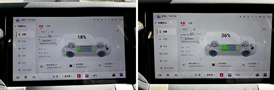此外,对于充电效率我们也进行了测试。实测人员使用快充桩充电 10 分钟后(波峰用电),电量从 18% 充至 36%,续航里程增加 31km,与车辆电脑预计的用时基本吻合。