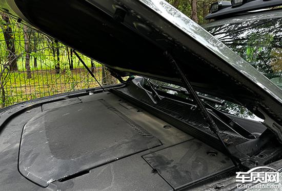 前舱盖的开关位于常见的驾驶位前部左下方,开启时只需要先拉动开关一下,然后再拨动舱盖内部的开关,顺势掀起即可。实测评测车的前舱盖采用双液压杆支撑,稳定性相当不错,并且开启和关闭过程都比较轻松。