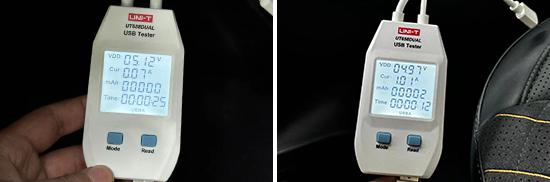 此外,我们对 USB 接口的电压与电流进行了测试。其中,前排 USB Type-C 接口的电压和电流分别为 8.79V 和 1.71A 左右,后排 USB Type-C 接口的电压和电流分别为 8.75V 和 1.61A 左右;此外,前排 USB Type-A 接口的电压和电流分别为 5.12V 和 0.07A 左右。后排 USB Type-A 接口的电压和电流分别为 4.97V 和 1.01A 左右。