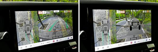 评测车配备 360 度全景影像,不仅画质相当清晰,同时支持多种画面切换,而且对于畸变控制也比较得当。此外,360 度全景影像还配备倒车辅助线,能更好地辅助驾驶员泊车。