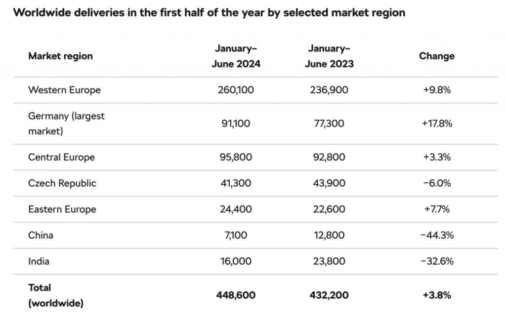 虽然在欧洲市场,尤其是西欧市场,斯柯达的销量同比增长 9.8% 至 26.01 万辆,但在中国市场的表现却不尽如人意。上半年,斯柯达在中国的销量仅为 7100 辆,同比大幅下滑 44.3%。柯米克、速派、柯珞克、以及柯迪亚克等车型销量都未能达到预期,导致整体销量的下滑。