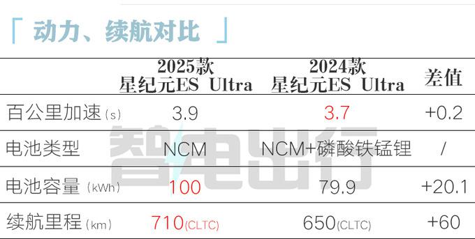 2025 款星纪元 ES Pro、Pro 城市智驾搭载单电机,最大功率 230kW,峰值扭矩 425N · m,匹配 77kWh 电池组,CLTC 工况续航里程 680km。Pro 四驱、Ultra 旗舰搭载双电机,综合功率 353kW,综合扭矩 663N · m,分别匹配 77kWh、100kWh 电池组,对应 CLTC 工况续航里程分别为 605km、710km。