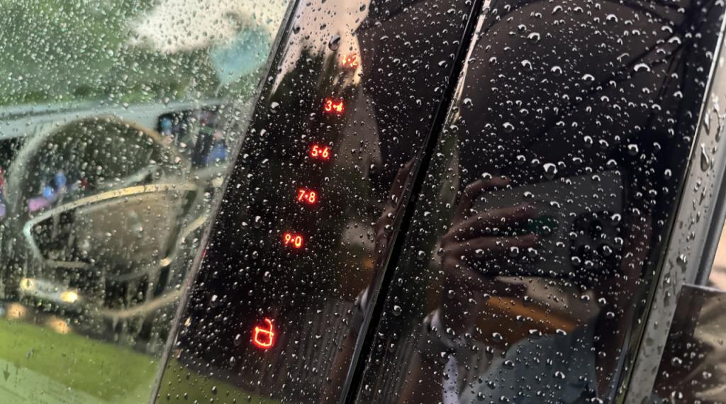 沿着门把手往上看,全新林肯飞行家在 B 柱上保留了美系车经典的 " 密码锁 ",采用了隐藏式的电容触控设计,使用时会亮起。