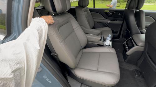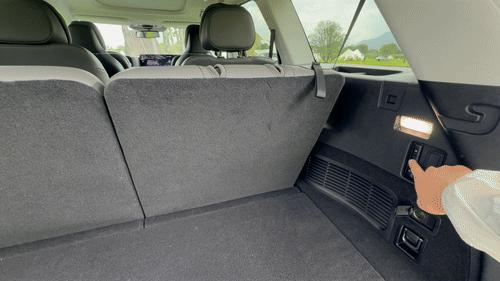 打开第二排座椅进入第三排,可以看到这个电动一键调节还是相当有仪式感的。