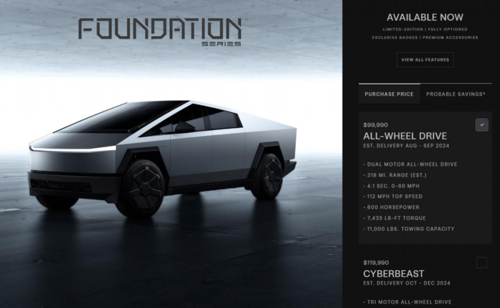 曾经让无数人为之着迷的 Cybertruck 就这么水灵灵的在特斯拉官网在线订购页面消失了,现在市场能购买的两个版本都是起价在 10 万美元上下的 " 限量版 "。这个价格不仅与埃隆 · 马斯克最初承诺的 "4 万美元 " 相去甚远,而且它表明,至少在这款产品上,特斯拉似乎已经放弃了 " 以价换量 " 的常规策略。