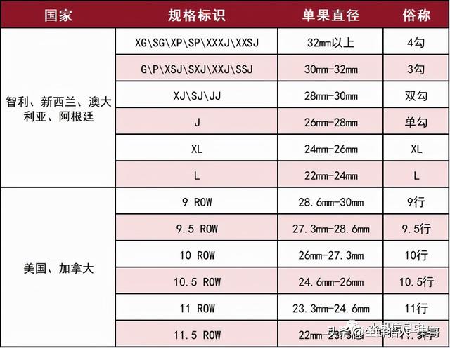 车厘子等级对照表图(车厘子箱标科普及常见车厘子国家产季表)