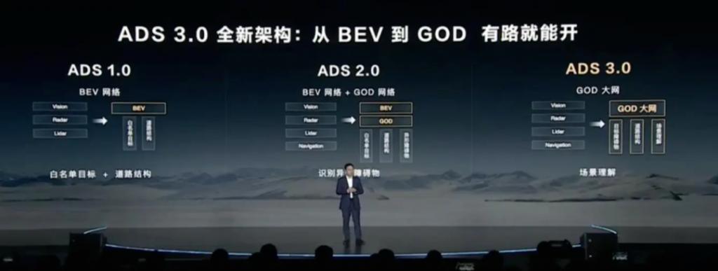 " 我们的感知经过了从 BEV 到 GOD,三次迭代,2.0 是利用了 GOD 网络,具有通用障碍物的检测能力,到了 3.0 的时候我们把 BEV 和 GOD 融合成为了更大的 GOD 网络。"