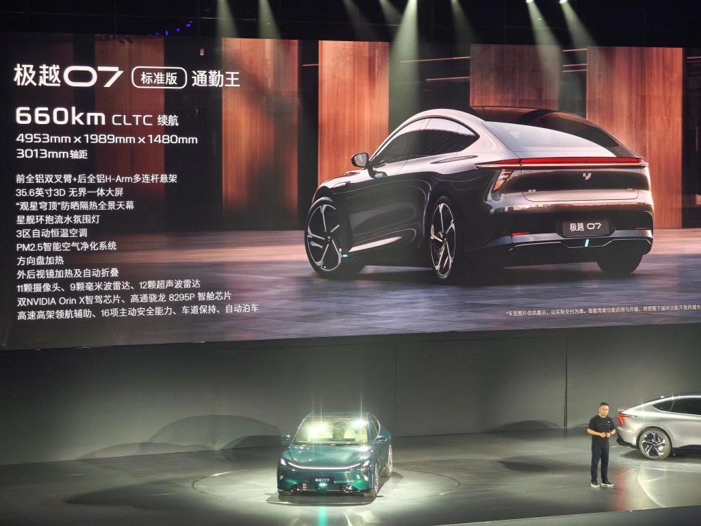 19.99 万的极越 07,对应着 660km 的续航、接近 5 米长的尺寸、60T 满血 8295+32GB 内存、35 英寸 6K 屏、标配双 Orin X 纯视觉智驾系统,等等。