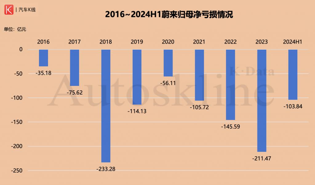 但从 2016 年至今,蔚来已累计亏损超 1080 亿!其中,2020 年到今年上半年,不足五年时间,蔚来的累计亏损就突破 622 亿元。