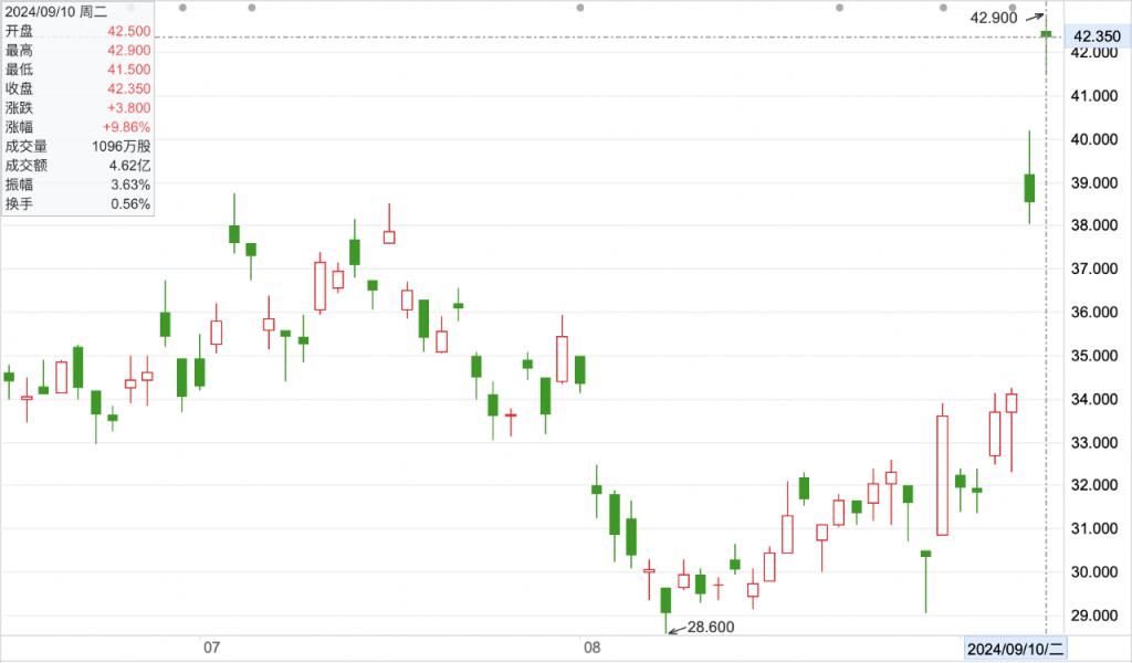 蔚来港股则两日上涨 24.19%,从此前的 34.1 港元 / 股涨至 9 月 10 日收盘时的 42.35 港元 / 股。