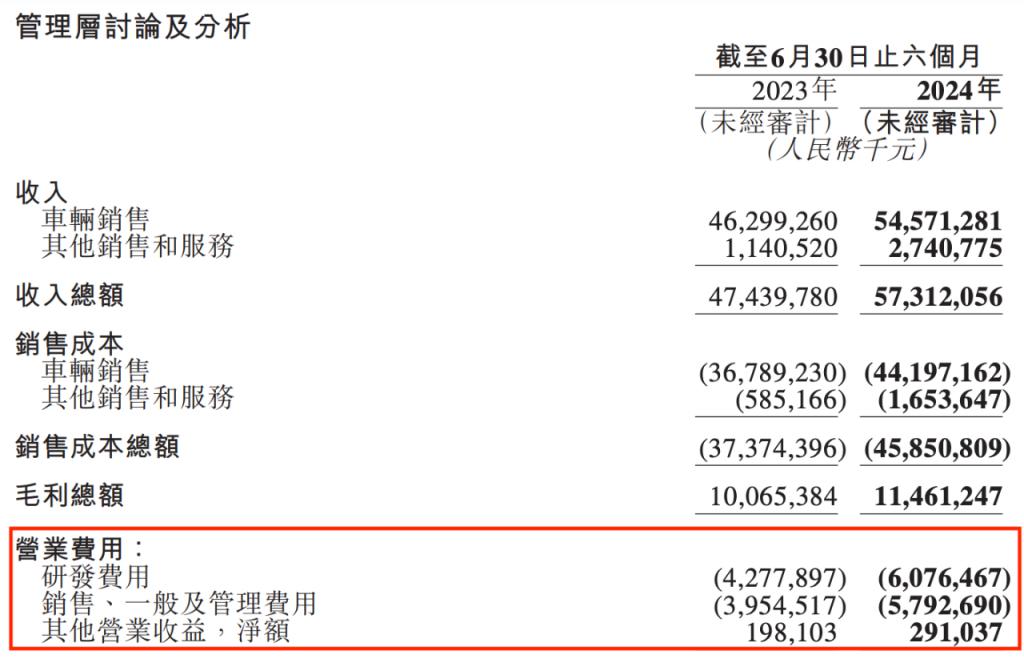 另一方面,理想汽车上半年研发费用同比上涨 42.04%,达到 60.76 亿元;销售费用更是增加 46.48%,达到 57.93 亿元,折射出中国新能源汽车竞争的惨烈程度。