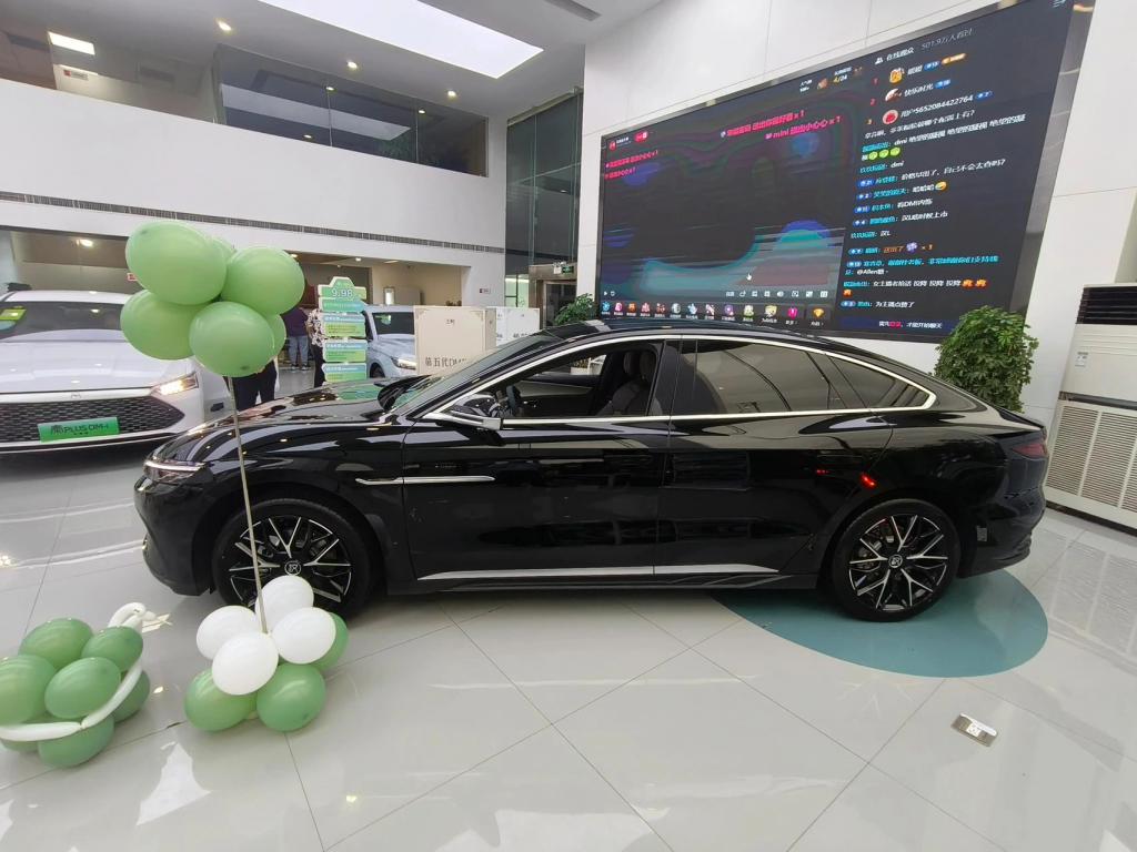 车身侧面,新车依然采用溜背式车顶线条设计,搭配时下流行的隐藏式门把手以及黑色密辐式轮毂和侧裙,进一步强化运动气息。尺寸方面,新车长宽高分别为 4995(4975)/1910/1495mm,轴距为 2920mm。另外,新车还新增 " 未央灰 " 全新外观配色选择,为消费者提供更多样的选择。车尾部分,新车尾灯采用贯穿式设计,并融入了比亚迪经典的 " 中国结 " 样式设计,增强辨识度。