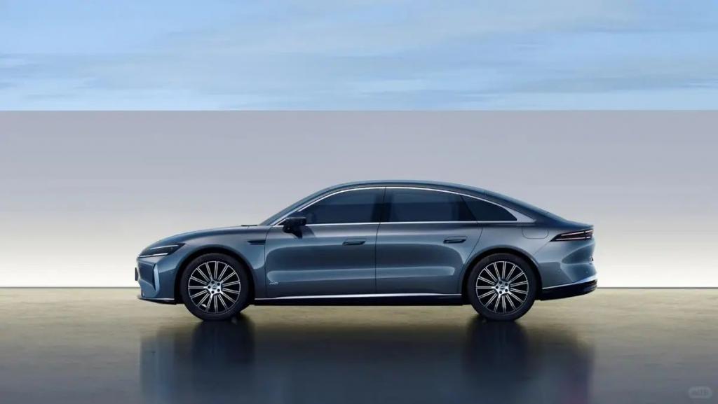 新车的侧面有着优美的车顶造型,线条流畅锐利,与星途星纪元 ES 类似。另外,新车配备了大尺寸多辐轮圈与半隐藏式门把手,在翼子板位置还有 "AWD" 的标识,表明了其四驱版的身份。车尾与之前发布的概念车保持一致,采用了贯穿式尾灯与电动扰流板的设计。