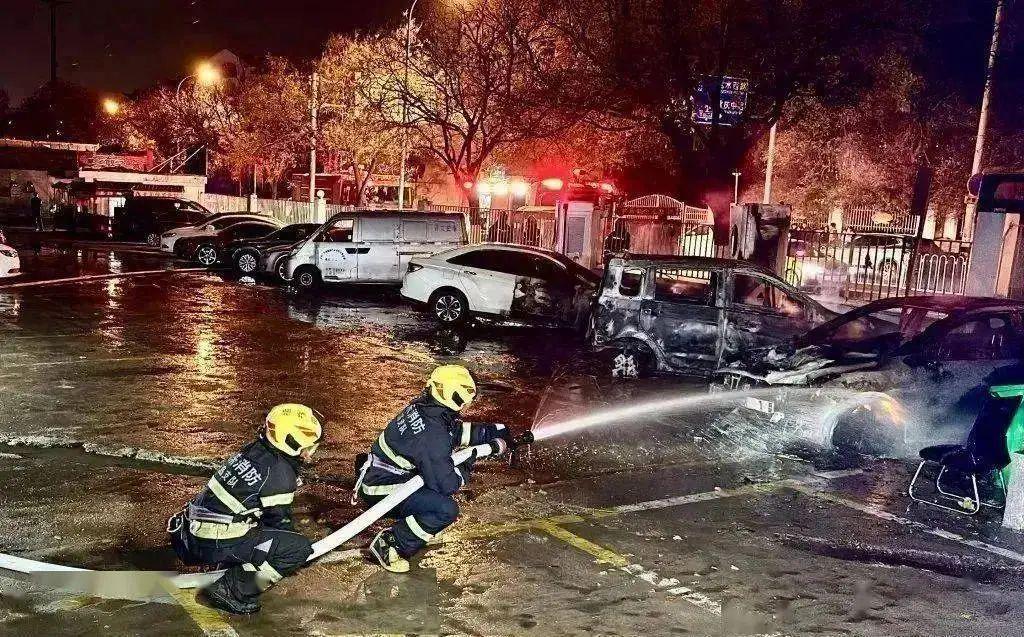 " 电动车起火快,地下车库的消防喷淋失效了,我们发现时立刻就用灭火器扑救了,但没多久又开始复燃了,还好消防队及时赶到控制住了火势。" 一位接受采访的小区物业诉说小区一新能源汽车起火时的经过。