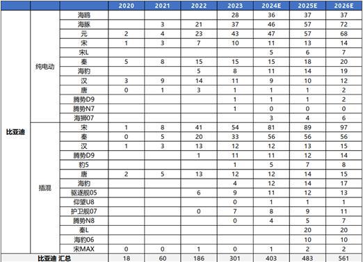 2023 年,比亚迪销量首次突破 300 万辆大关,而随着 DMI5.0 平台的推出,公司还将迎来大改款,亏电油耗、续航里程等核心指标,领先业内至少一年的时间。在这一平台的加持下,比亚迪在今年有望做到 400 万辆,而 500 万辆也最早可能在 2026 年就突破。