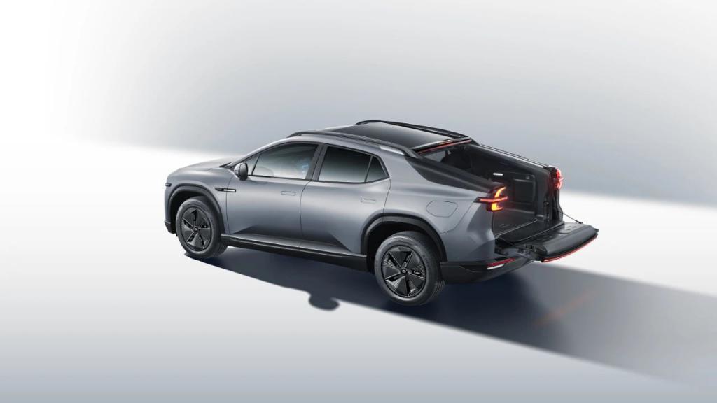 新车定位为大型纯电 SUV,采用 5 座布局设计,全球首创了滑动后穹顶,配合电动升降隔断、电动平翻尾门,可实现 SUV 与皮卡的双形态切换。