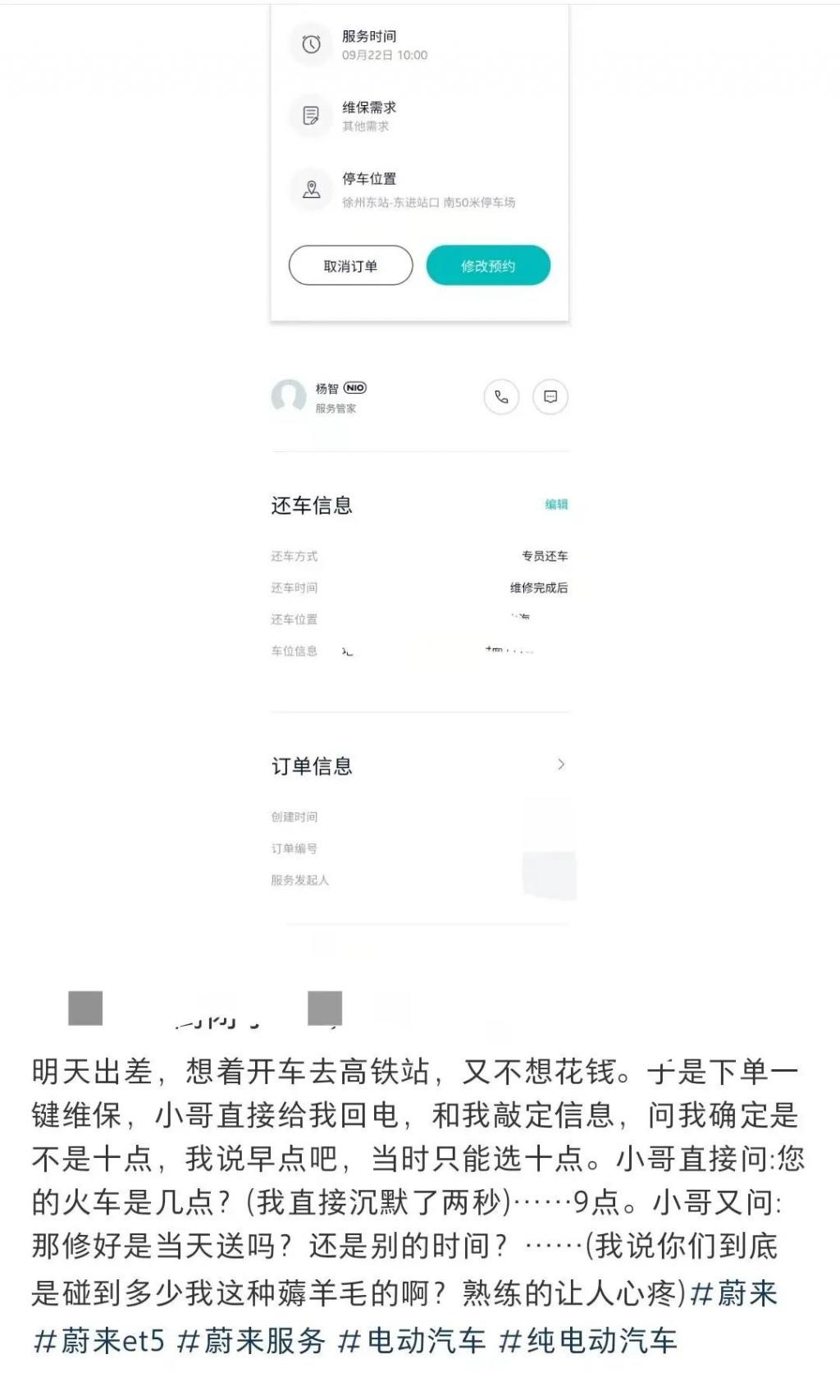 除了换电的玩法,海底捞式的蔚来服务也被羊毛党们薅秃了。