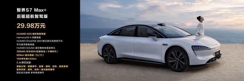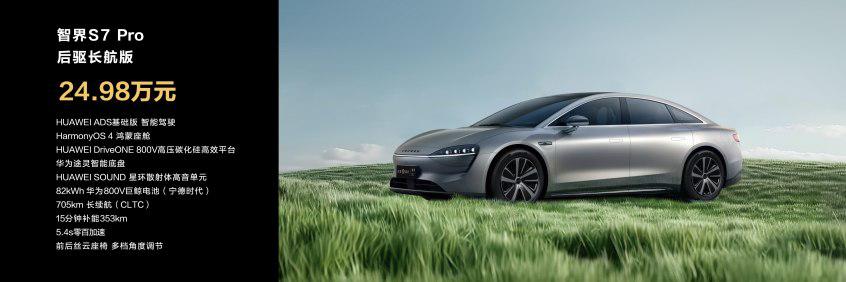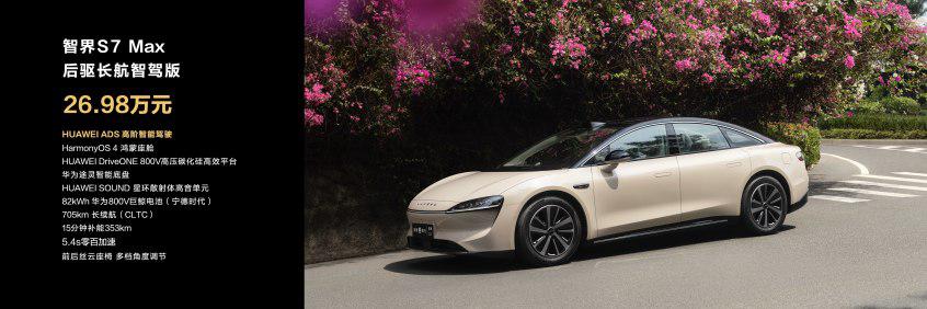 新款智界 S7 指导售价车型售价(万元)Pro 后驱长航版24.98Max 后驱长航智驾版26.98Max+ 后驱超航智驾版29.98Max RS 四驱性能版32.98Ultra 四驱旗舰版34.98爱卡汽车网制表 www.xcar.com.cn