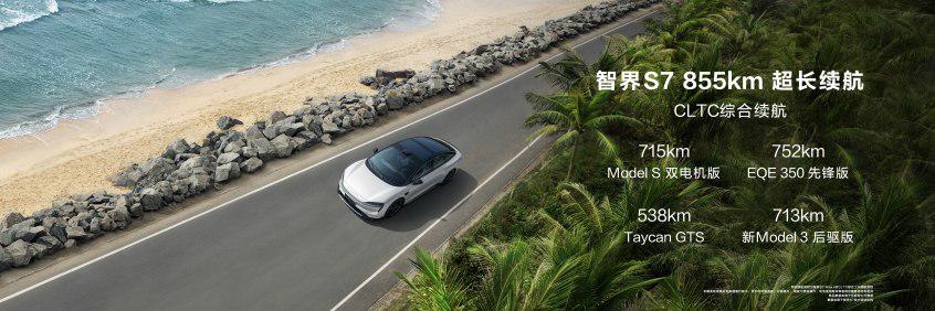 智界 S7 标配 HUAWEI DriveONE 800V 高压碳化硅平台,5 分钟内可补充 215km 的续航里程,充电 15 分钟可补充 430km 的续航里程。两驱版车型的最大功率 292 马力,四驱版达 496 马力,0-100km/h 加速时间仅需 3.3 秒,100-0km/h 的制动距离仅为 33.5 米,展现出了卓越的加速与制动性能。在续航方面,智界 S7 的 CLTC 综合续航最高可达 855km,满足了长途出行的需求。