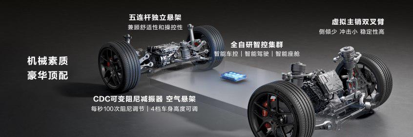 此外,智界 S7 全系都搭载了途灵智能底盘,配备了 CDC 可变阻尼减振器和空气悬架等先进配置,这些技术的运用大幅提升了车辆的操控稳定性和乘坐舒适性。无论是在城市道路还是复杂路况下,智界 S7 都能为驾驶者带来更加平稳、安全的驾驶体验。