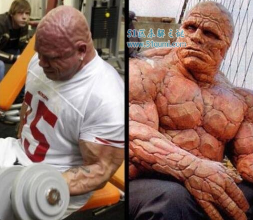美国猎奇新闻网站报道,一名来自芬兰的健美运动员杰瑞·门图拉因肌肉发达,外貌酷似“石头人”,因此被网友们成为世界上肌肉最发达的人。图中可以看到该男子与神奇四侠中“石头人”的对比,是不是非常形象,用起力来全部都是褶皱,不过网友们的关注点似乎并不在身上。