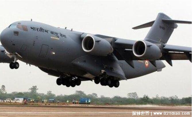 C-17运输机是美国空军大型战略战术运输机,它又被称为波音C-17环球霸王III,C-17运输机机身长度为53米,机身高度为16.8米,最大起飞重量为263吨,最大航程可达1.1万公里,必要时也可以对地面进行空投。