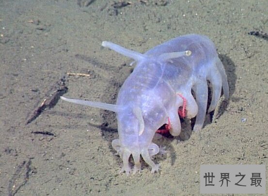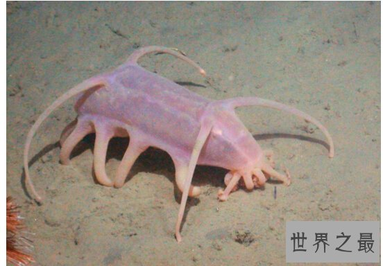 海猪是一种长得圆滚滚、胖嘟嘟、全身是水、还有奇怪触手的生物,是海参的近亲,栖息于深海海床上(通常水深超过1000米),以触手推送食物到嘴里,看图片简直萌哭了!!!海猪有短短的触角,身体肥肥QQ的。它是海参的一种,学名叫“管足”,有5-7对脚,生活在深海里,吃各种微生物和海洋动物尸体。