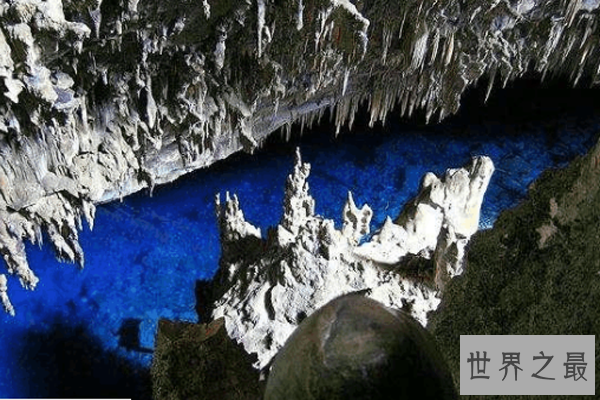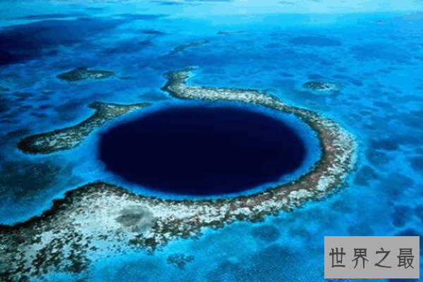 第四大地貌奇观,位于洪都拉斯被人们称为是大蓝洞,也是全世界最大的水下洞穴,如果你从天空往下俯视看的话,会看到一道很美丽的花环,呈现出深蓝色,所以被称为是蓝洞,这个蓝洞是石灰岩洞。