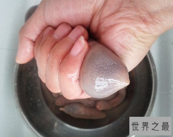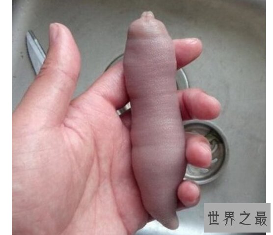 说单环刺螠是世界上最邪恶的海鲜,主要因为它的外表。虽说小编是吃货,但有的真的下不了嘴。单环刺螠,俗名就是海肠、海肠子,属于螠虫动物门。单环刺螠是一种长圆筒形的环节动物,软乎乎地蠕动,浑身无毛刺,浅黄色。海肠长得像裸体海参,个体粗大,长约100一300mm,宽约25-27mm,所以才会被称为世界上最邪恶的海鲜。