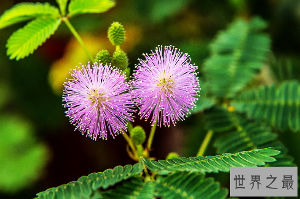 含羞草,是一种形象话的比喻,由于它的叶子会对热和光产生反应,受到外力触碰会立即闭合,所以得名含羞草。它的叶子为羽毛状复叶互生,呈掌状排列,开花后结的果实呈扁圆形。