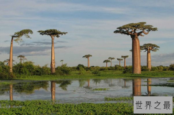 猴面包树,主要生长在气候炎热、干燥的地区,树干内部组织中能够贮水,以供它们的生长。。在沙漠旅行,如果口渴,你可以用小刀在猴面包树的肚子上挖一个洞,清泉便喷涌而出,立刻帮你解渴。