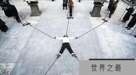在中国历史上,凌迟没有出现之前,对于有造反罪名或者对王权有极大威胁的犯人,往往会采取车裂的酷刑,也就是我们经常提起的“五马分尸”。只从字面意思上,也非常容易想象这是一种什么样的酷刑,简单说就是把犯人的四肢和脖子依次与马车相连,五辆马车向不同的方向硬拽。据史书记载,曾有一位执行官和犯人约定:等你头被撕下来的时候,如果有知觉,就眨一下眼睛。结果犯人人头落地后,真的眨了眼睛,自古以来,能被这种酷刑处置的犯人,基本都是当权者心中十恶不赦的大罪人。
