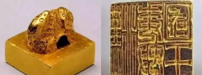 这是东汉时期倭国与汉朝建交时受赐的金印,高约2.2厘米,长宽为2.3厘米,用纯金打造而成。