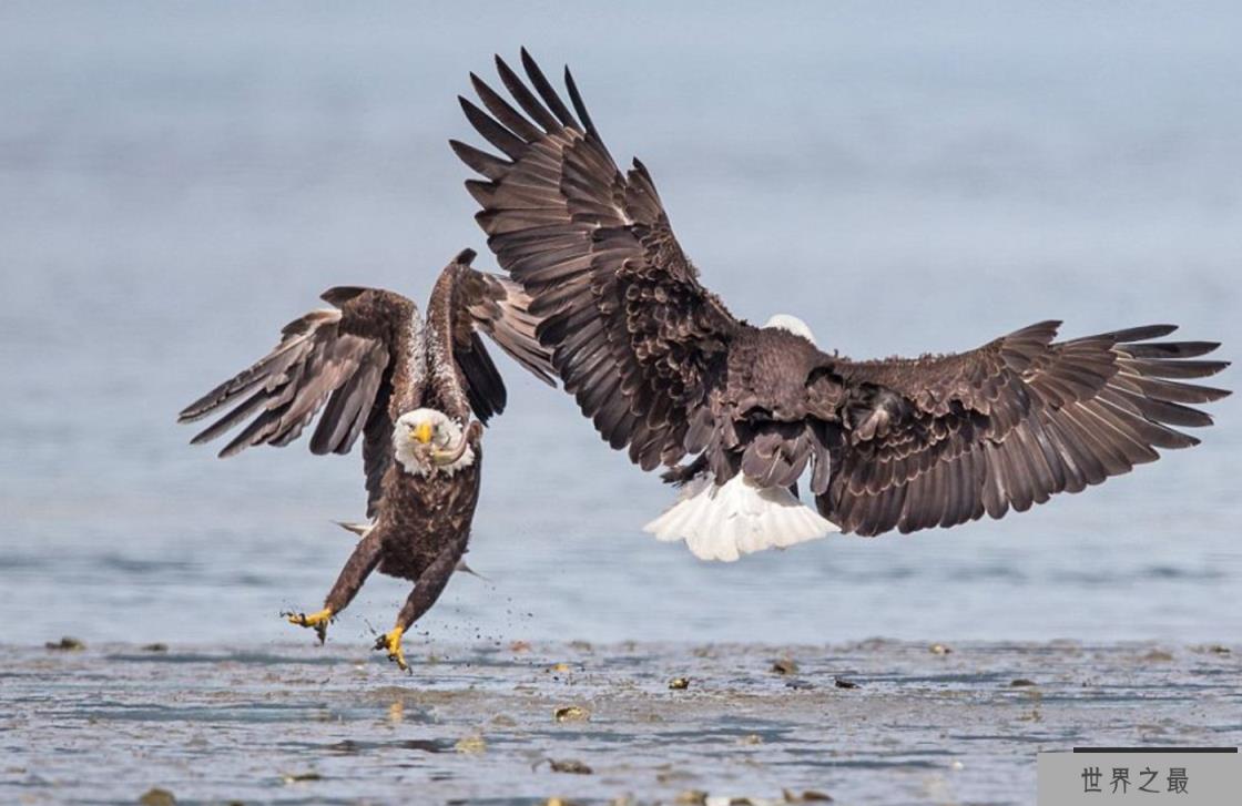 白头海雕又叫做美洲雕,是美国的国鸟,成年海雕体长可达1米,翼展2米多长,属于大型猛禽,白头海雕的外形十分雄壮优雅,它的羽毛是暗褐色的,但是它的头部是白色的,有一个颜色鲜艳的喙,白头海雕喜欢在海岸边觅食,它的嘴和爪子都十分锋利,而且还是钩曲的,所以攻击力特别强,同时白头海雕的性情凶猛,一旦招惹到它,白头海雕就会立刻发起攻击。