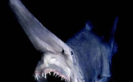 欧氏尖吻鲛,别名欧氏剑吻鲨、欧氏尖吻鲨,也被称为哥布林鲨是尖吻鲛科下的独逐一个物种,是一种深海鲨鱼。欧氏尖吻鲛的特性是它的吻向前突起而产生一尖突,比其余鲨鱼的更为长,以此感触猎物,二颌前移产生鸟喙状,不妨忽然伸出夺取猎物。它的另一个特性是半通明的皮肤,以显展现血液使身材呈粉赤色。