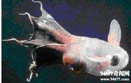 古怪而奇妙的图片,你能猜出是什么吗?这是一种烟灰蛸属(Grimpoteuthis)的深海章鱼,其外套膜上长着很大的肉鳍,在腕足之间也长有肉膜......