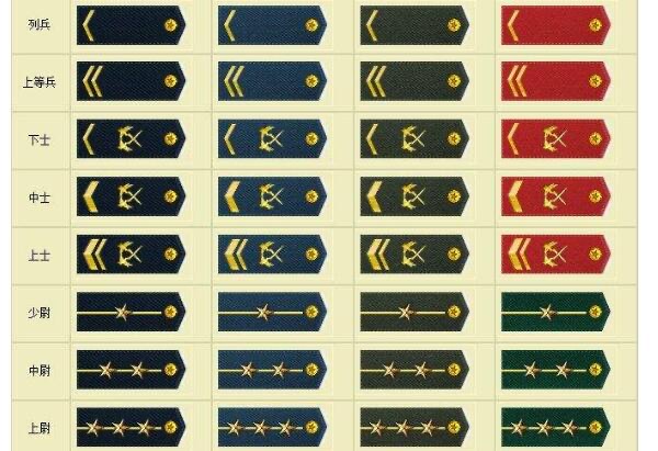 列兵是在新兵连的时候授予的,也是入伍的第一个军衔,上等兵是第二年授予的,一般时间到了就有,下士是当了两年义务兵之后看部队需求和自己意愿的,名额有限,而且不同的部队名额也不一样。到后面当到头按照自己意愿还有部队需要来选中士,中士当到头就可以晋上士,一般来说上士当到头就是12年,大部分人都退伍了。后面一般都是技术人才可以晋级四级军士长。
