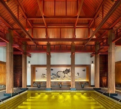 位于拉萨的瑞吉度假栈房内的黄金能量泳池(黄金能给人甚麽能量??想没有透)