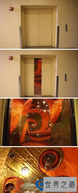 2 异次元电梯:这是纽约皇后区里最有艺术气息的电梯,外表平凡无奇,但是一打开门就气势惊人,仿佛是异世界的入口。