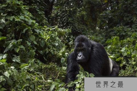 山地大猩猩是濒临灭绝的珍稀动物之一,目前全球仅有880只,它主要分布在非洲维龙加山脉,它被称为“温和的巨人”,因为它虽然有粗鲁的面孔和巨大的身材看起来十分可怕,但实际上它们是非常平和的草食性动物,日常活动是:闲逛、嚼枝叶或睡觉。