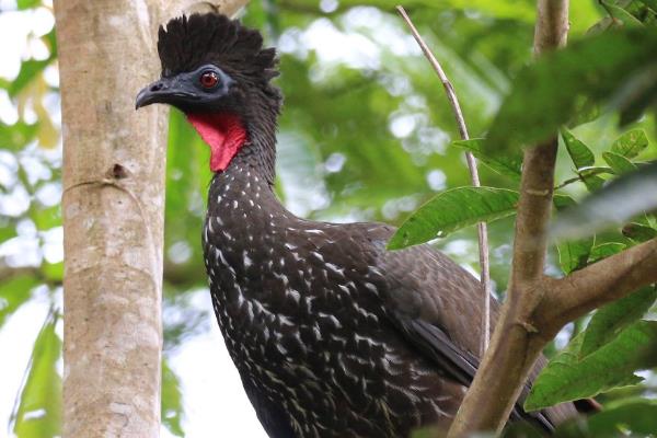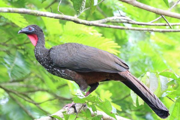 紫冠雉是一种长有漂亮凤头冠的庞大雉鸟,体长一致可达86厘米,形状瞅起来和火鸡十分相似,头颅十分很小,然而扇形冠饰十分巨大,从喙根部成长到脑后,瞅起来便像是戴了一个皇冠一般,它的双腿十分健壮,因此固然不行久飞,然而长于攀登树木和奔波。