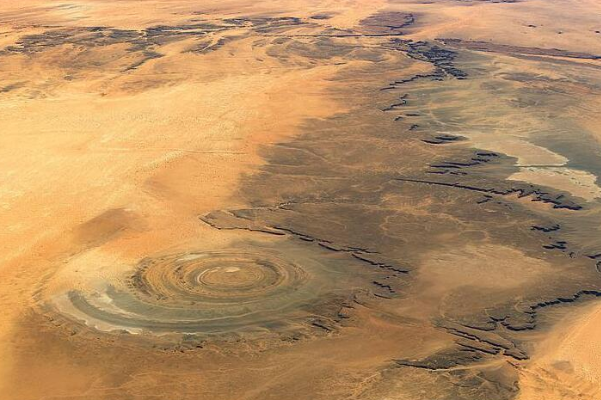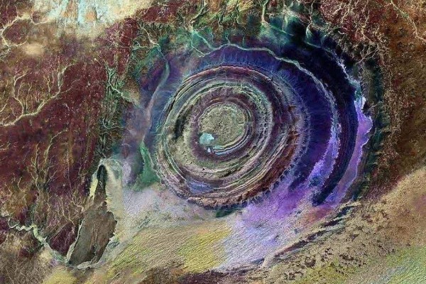 开始,人们并不创造撒哈拉之眼,直到加入太空才创造了这一奇异局面,所以它又被称之为“天主之眼”,是世界十大壮阔地质奇妙之一。依据材料显现,这只巨眼位于戈壁的西南部,地处陶德利盆地之中,直径大约40公里,由很多的共心圆构成,共心圆的四周产生了狭长的丹凤眼外形,共340公里之长。共心圆的内圈十分平展,四周有些小山丘。